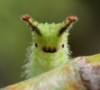 Description: a green caterpillar in a space suit with a rainbow pride badge